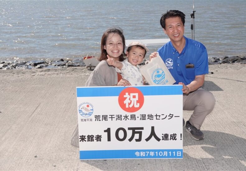 [熊本県]水鳥・湿地センター来館者10万人突破 荒尾干潟の自然満喫 夕日を背に大声大会も