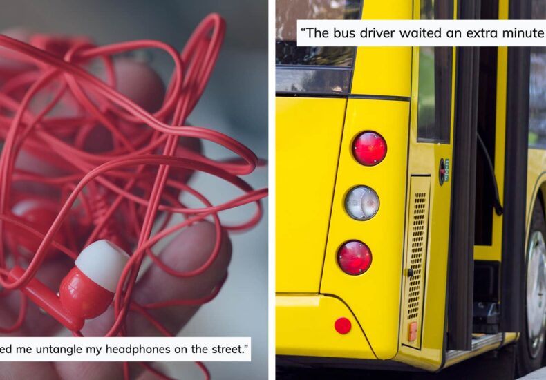 “A stranger helped me untangle my headphones on the street.”